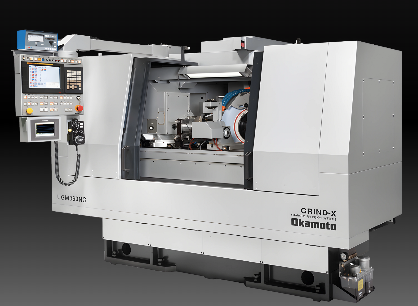 The UGM-NC Series from OKAMOTO represents the forefront of Advanced Okamoto Grinding Technology, delivering a versatile and reliable solution for complex grinding requirements. This universal cylindrical grinder is built upon a foundation of exceptional stability, utilizing a T-shaped machine bed and Double V table slideways to minimize vibration and enhance precision across the grinding area.