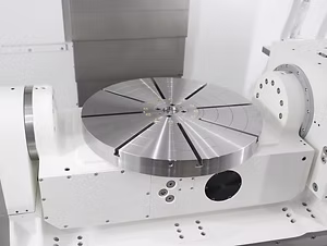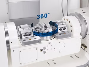 The TERA 50VT is MICRO DYNAMICS’s 4+1 Axis Vertical Trunnion Table Machining Center, featuring a powerful 40 Taper built-in spindle (15,000 rpm, 41 hp) and rapid feed rates up to 1,889 ipm for high-speed performance. Designed for high rigidity with FC300 Meehanite casting and a Roller Gear Cam mechanism for zero-backlash rotary motion, it allows for complete process consolidation with the capacity to machine six faces in one cycle. It offers a minimal footprint and includes advanced features like the DYPEC Thermal Compensation and a high-speed 1.2-second Tool-to-Tool ATC.