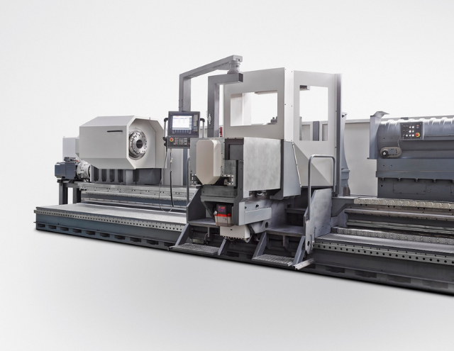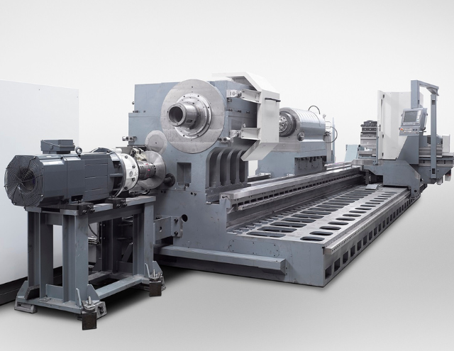 The FAT HACO TUR 4MN is a heavy-duty CNC lathe designed for the extremely stable processing of large-size elements. Featuring a special “step-bed” type construction, it ensures processing stability under the full power of the machine. It offers impressive standard capacity with a 1300 mm swing over bed and the ability to turn parts up to 16000 mm distance between centers, ideal for massive industrial components.
