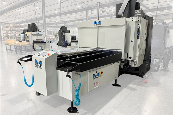 The MIDACO A6040SD Pallet Changer is an Automatic Pallet Changer system designed to eliminate spindle downtime and significantly boost throughput on vertical machining centers. Featuring a 4000 lb (1816 kgs) capacity pneumatic receiver and two 60 inch by 39 inch aluminum pallets, this end-load shuttle unit includes an Automatic Door and facilitates fast, reliable, and consistent pallet changes outside the machining envelope.