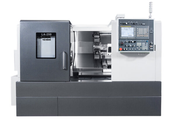 The LA-200 is the base model in the LA Series of compact Horizontal Boxway Lathes designed to achieve maximum production and flexibility for high-torque- high-speed turning applications at an exceptional value. Its foundation is built upon highly rigid Box Guideways on the X and Z axes- ensuring sustained accuracy, stability, and superior performance during heavy cutting. The standard LA-200 offers robust turning capacity- accommodating a maximum workpiece swing of 18 point 5 inches, a maximum turning diameter of 12 point 6 inches, and a turning length of 11 point 8 inches.