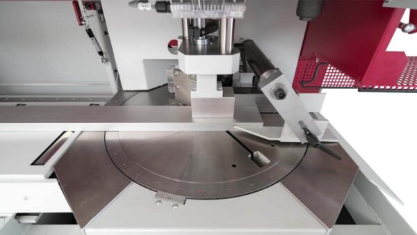 The heart of the PSU mitre saw unit is the worm gear unit with Eisele shock-absorbing feature, produced in-house. It is heavy-duty and provides for a smooth, low-vibration running of the saw, which, of course, has a positive impact on the quality of the cutting surface and the blade life.