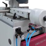 The BEHRINGER Eisele VMS 350 PV is a robust, semi-automatic circular cold saw designed for precise miter cuts and rapid processing of steel, stainless steel, and non-ferrous metals. It features pneumatic clamping and a powerful frequency-controlled saw drive for infinitely variable speeds between 15 and 150 m/min, ensuring optimal cutting performance and efficiency for tube, profile, and solid materials up to 120 mm in diameter.