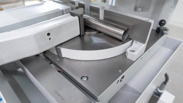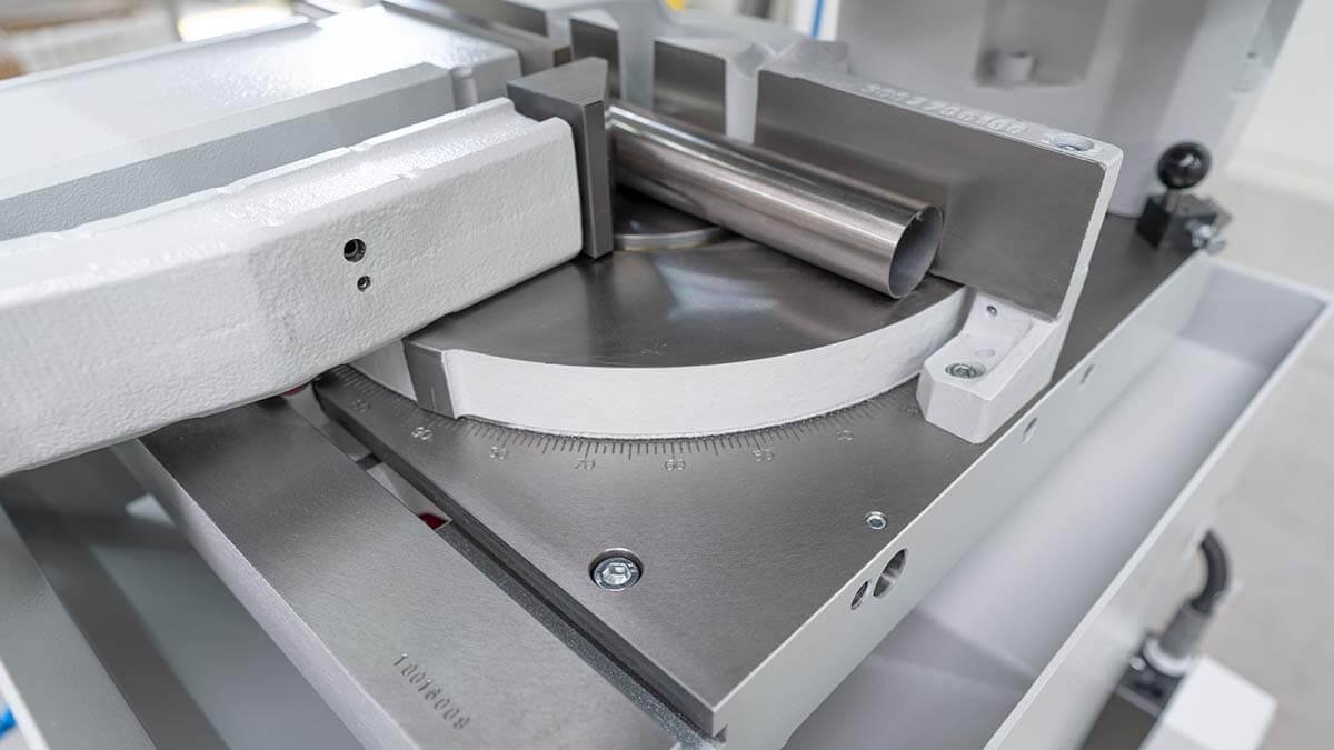 The heart of the VMS circular saw unit is the worm gear unit with Eisele shock-absorbing feature, produced in-house. It is heavy-duty and provides for a smooth, low-vibration running of the saw, which, of course, has a positive impact on the quality of the cutting surface, the blade life, and the service life of the saw.