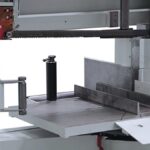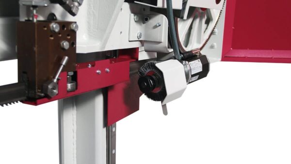 The BEHRINGER HBE320-523G is a semi-automatic horizontal miter bandsaw offering a cutting range from +45 to -45 degrees and up to 15 degrees tilting for efficient structural steel and profile processing. Its precision-ground, backlash-free worm gear and rigid cast-iron saw frame ensure exceptional cutting accuracy and stability, with a cutting capacity of 12-6 inches (320 mm) at 90 degrees.