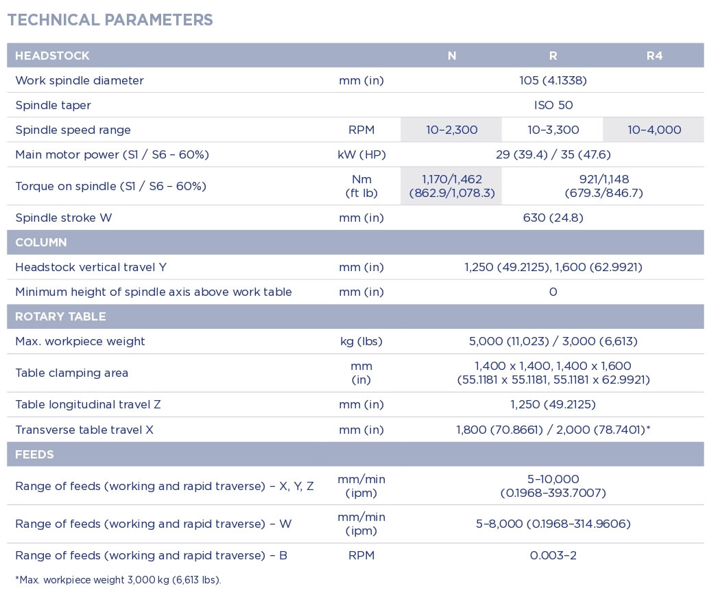 The horizontal milling and boring machine WH 105 is a modern, efficient, continuously controlled milling machine. The high cutting parameters and broad comfort of technological features predestine this machine for application in very demanding technological operations. The continuous control of the X, Y, Z, and W coordinates and the rotating positioning table create conditions for universal application. It can be used for efficient milling of box-type components from multiple sizes, as well as milling of moulds and other complicated workpieces.